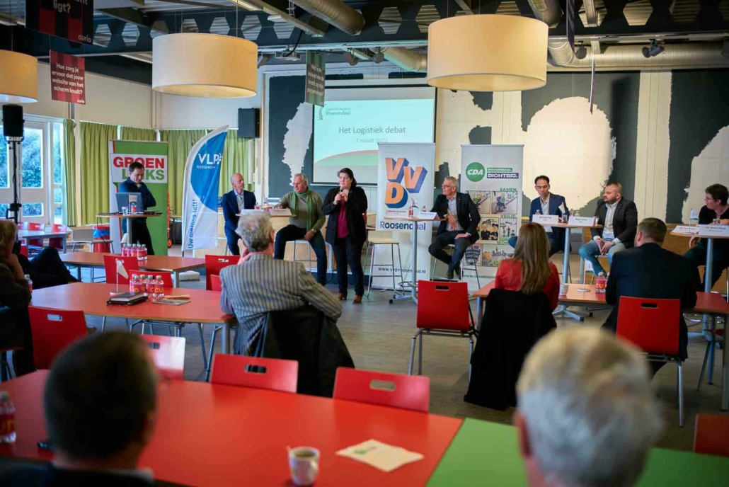 De lokale, politieke vertegenwoordigers waren te gast bij Curio waar door het Logistiek Platform Roosendaal het politieke, logistieke debat werd gevoerd. Gespreksleider Maarten van den Boom, presentator Zuidwest TV, confronteerde de vertegenwoordigers met een aantal pittige stellingen op het gebied van arbeidsmarkt, infrastructuur, onderwijs en ondernemersklimaat.